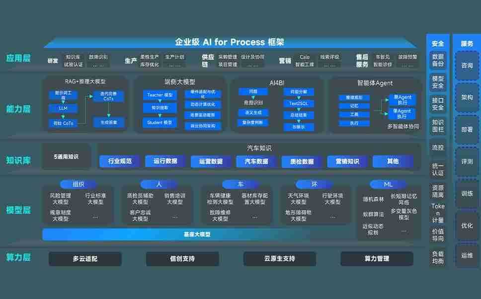 端到端的一站式AI工作空间深度融合了从企业战略规划到日常经营的全流程业务板块,,,,定向解决车企内部领域多、、、、部门多、、链条长、、、、场景碎片化等难题,,支持车企快速构建以AI为核心的生产力写作体系,,,实现任务执行与AI能力的无缝集成与交互
