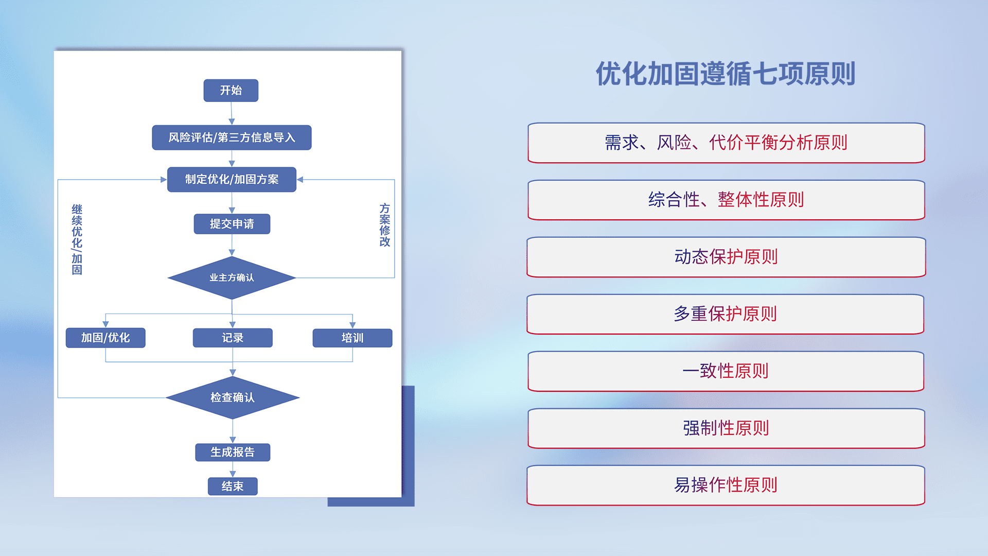 最大程度利用现有资产,,,对评估发现的问题进行封堵与整改,,,,防止漏洞被利用,,提升整体网络安全性,,为客户带来高标准的优化加固服务。。