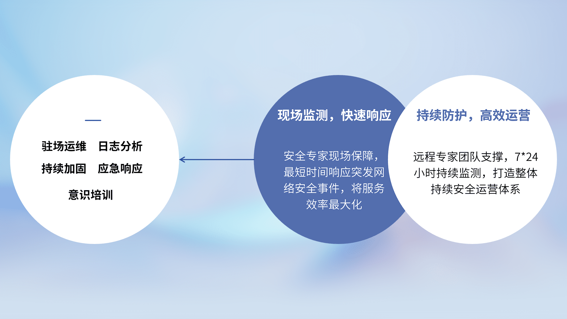 针对客户行业特性,,,,提供专属的一站式安全管理服务,,,,帮助客户全面感知网络空间威胁,,通过安全专家的线上、、、线下防护支持,,实现风险闭环,,,,将安全保障常态化,,,,为客户打造常态化安全运维运营服务。。。。